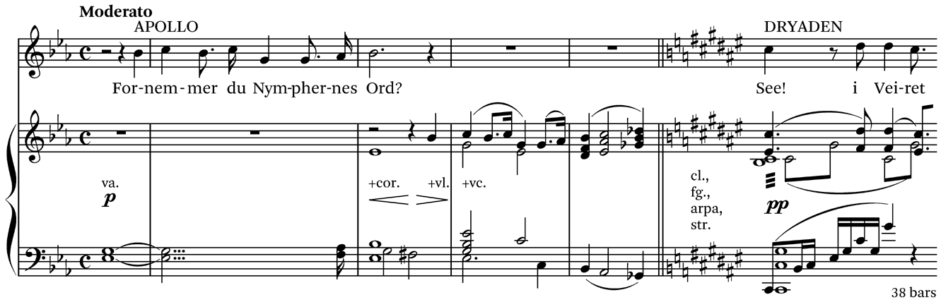 12 parts: Dryaden; Apollo; Pan; Hermes; Phantasus / Tenor solo; Genie / A.1, Genie A.2; Genie T.1; S.; A.; T.; B.