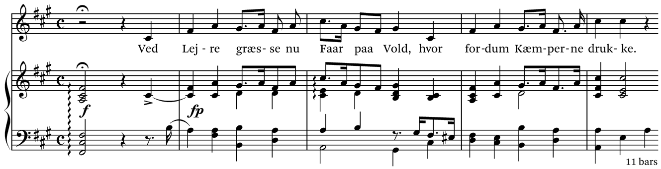 In November 1847 B.S. Ingemann sent Hartmann a copy of the third edition of his "Holger Danske, et Digt i fem Sangkredse", published that year. Hartmann immediately set music to "Holger Danskes Vugge", and a few days later the song was performed at a concert in The Royal Theatre by the singer Christian Hansen, who had been present when Hartmann composed the song.