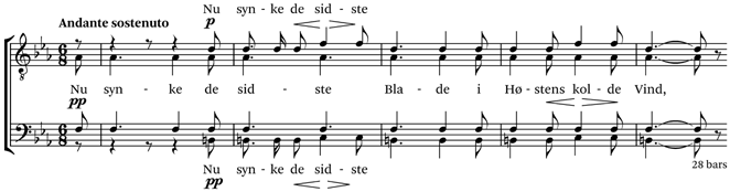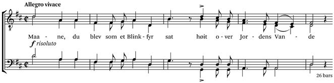 Hartmann dedicated his "Sex Sange for Mandsstemmer", opus 61 to Studenter-Sangforeningen in appreciation of their erection of a bust of him, modelled by H.W. Bissen, in their rooms. The money were raised partly through a collection among the members and partly by giving a concert.