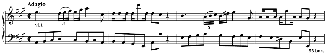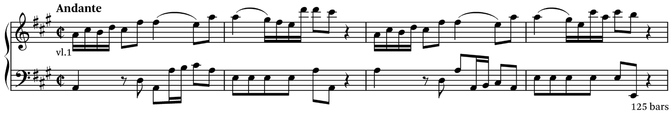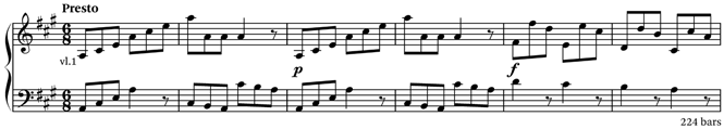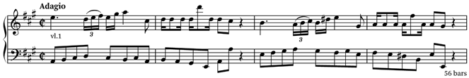 In 2o; upright format; music (fols. 1r–2v); in all a single bifolio. Hand-ruled paper, 14 staves (9 mm; single rastrum used) in light brown ink and music in black ink; stave between two movements as well as bottom stave on fol. 1r and all the staves on fol. 2r have not been used. A clean copy with only two corrections made in the music (rest and pitch).