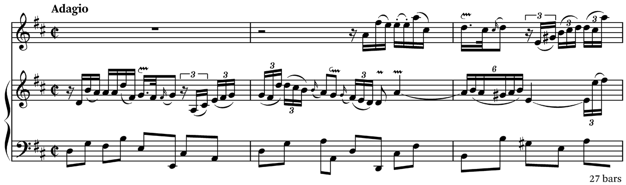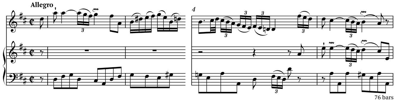 Source consists of two parts: a keyboard part and a vl./fl. part in oblong format and both parts bound together; at bottom left-hand corner of the title page 'No C' and 'Stor fol.' are added in ink, presumably the first refers to Haffner's catalogue number and the second to the score.